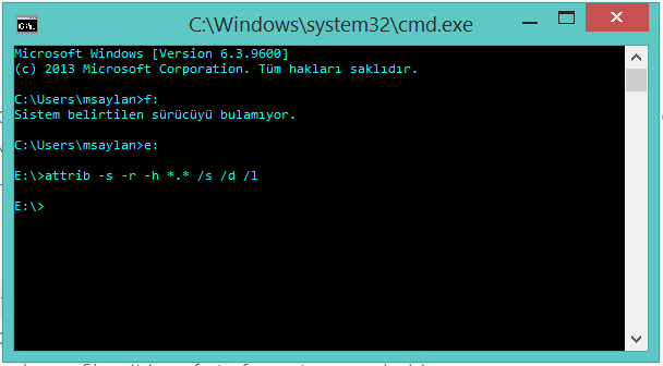 - Open a command prompt and navigate to your drive by typing drive letter and semicolon like